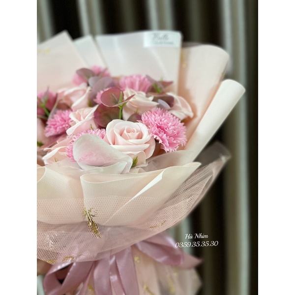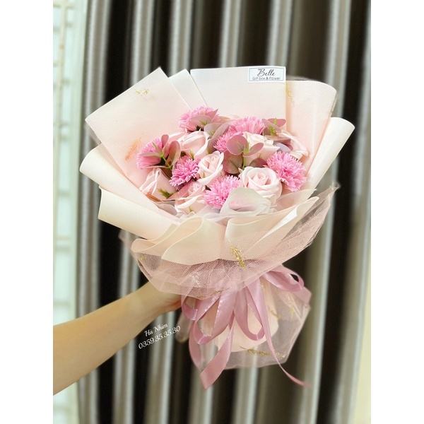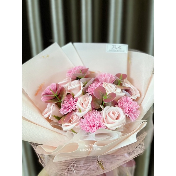 Bó hoa hồng sáp mix hoa cẩm chướng siêu đẹp tặng kèm túi + thiệp