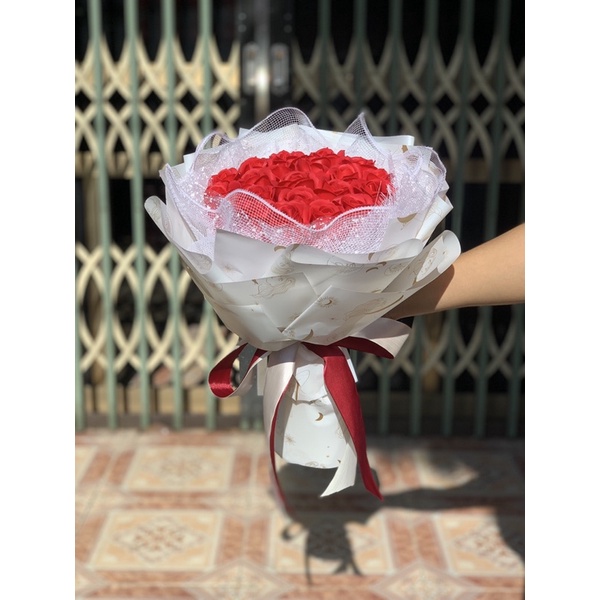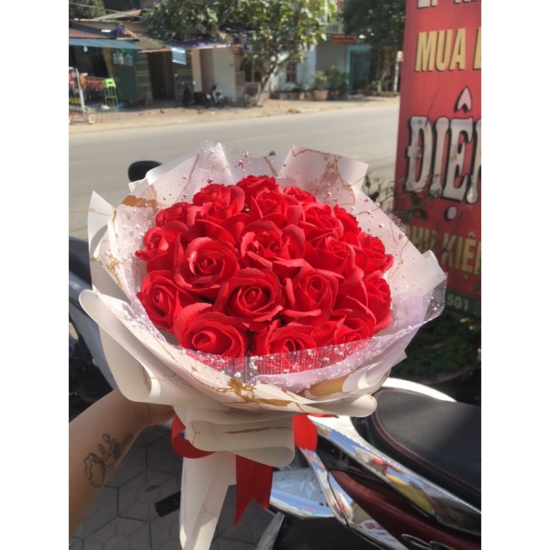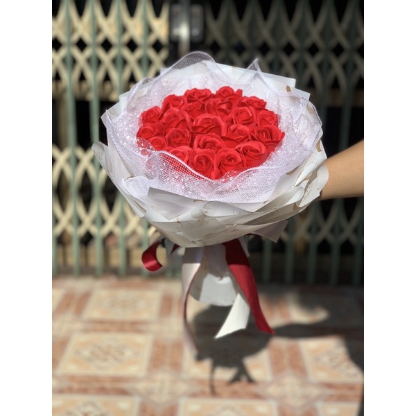 Bó Hoa Hồng Sáp 22 bông, nhũ 14b