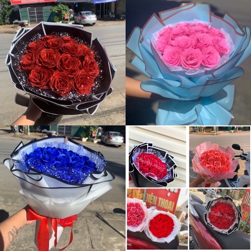 Giới thiệu Bó Hoa Hồng Sáp 22 bông, nhũ 14b