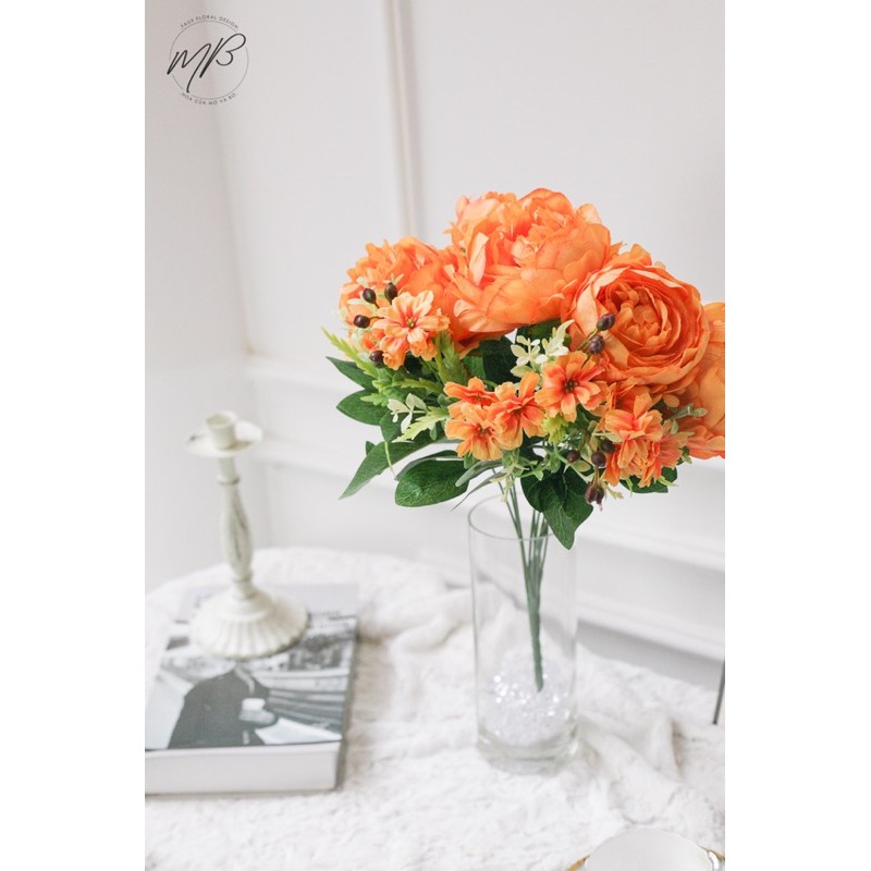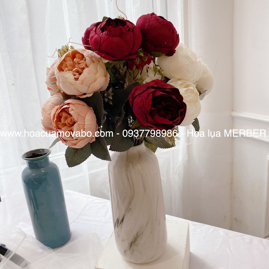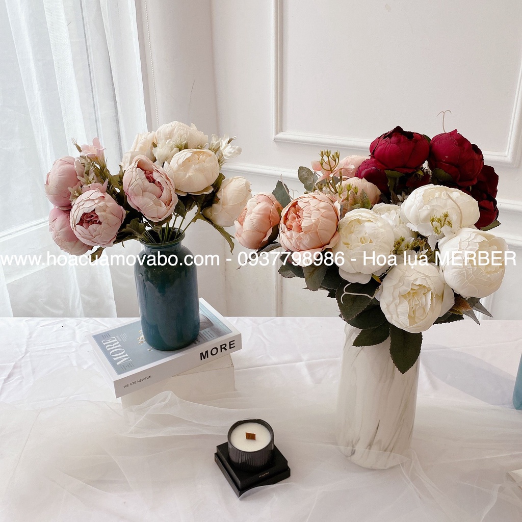 Bó Hoa Mẫu Đơn Cao Cấp Merber (Mơ & Bơ) Cụm 5/6/9 Bông Nhiều Màu - Bông Khô Hoa Giả Decor Trang Trí Nhà
