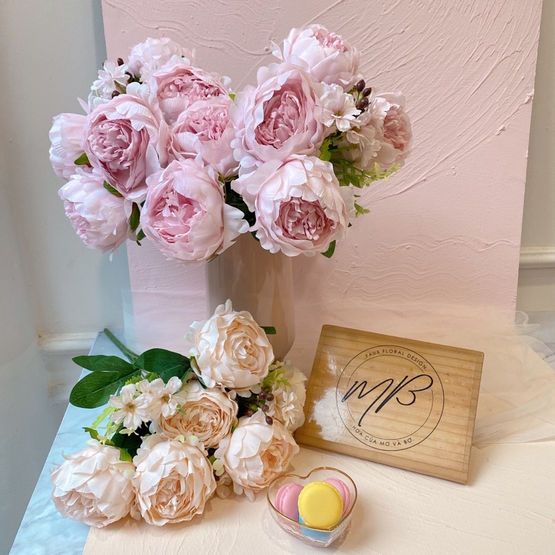 Giới thiệu Bó Hoa Mẫu Đơn Cao Cấp Merber (Mơ & Bơ) Cụm 5/6/9 Bông Nhiều Màu - Bông Khô Hoa Giả Decor Trang Trí Nhà