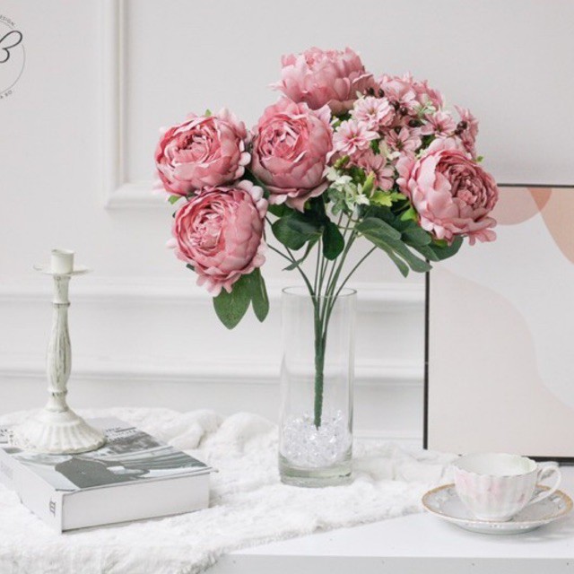 Nhà cửa & Đời sống > Trang trí nhà cửa > Hoa trang trí || Bó Hoa Mẫu Đơn Cao Cấp Merber (Mơ & Bơ) Cụm 5/6/9 Bông Nhiều Màu - Bông Khô Hoa Giả Decor Trang Trí NhàCòn hàng
