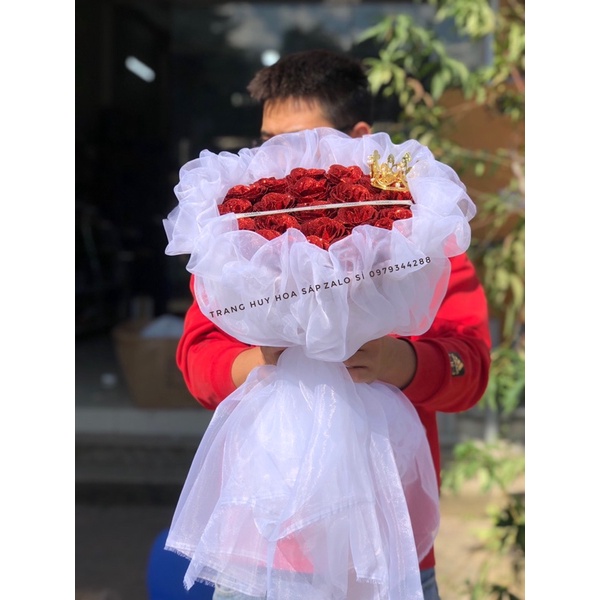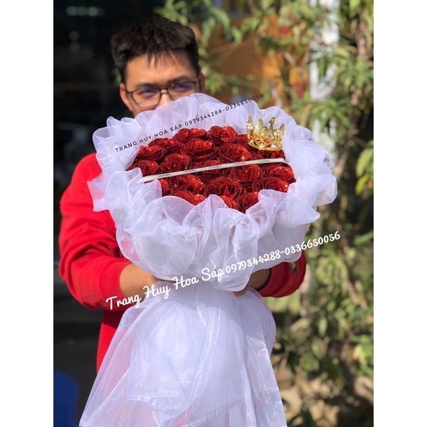 bó hoa nhũ kim tuyến sang chảnh , 20 bông, bó trònkèm đèn và vương miện,