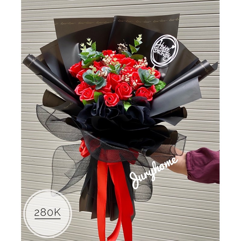 Bó hoa 25 bông kèm hoa bi khô siêu xinh, được bó to sang chảnh.Shop chỉ nhận nowship vì bó to không đóng thùng được. Quý khách có nhu cầu vui lòng ib shop trước ạ.