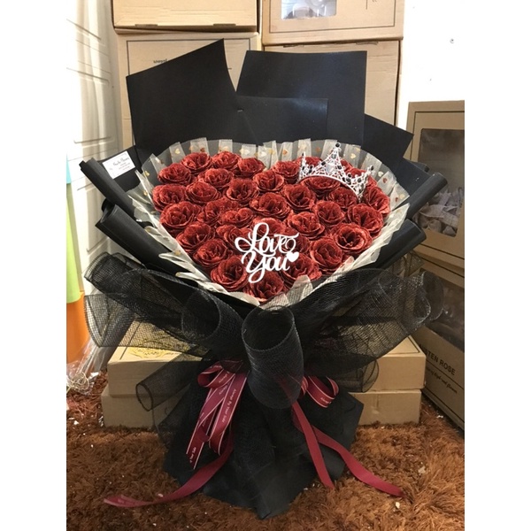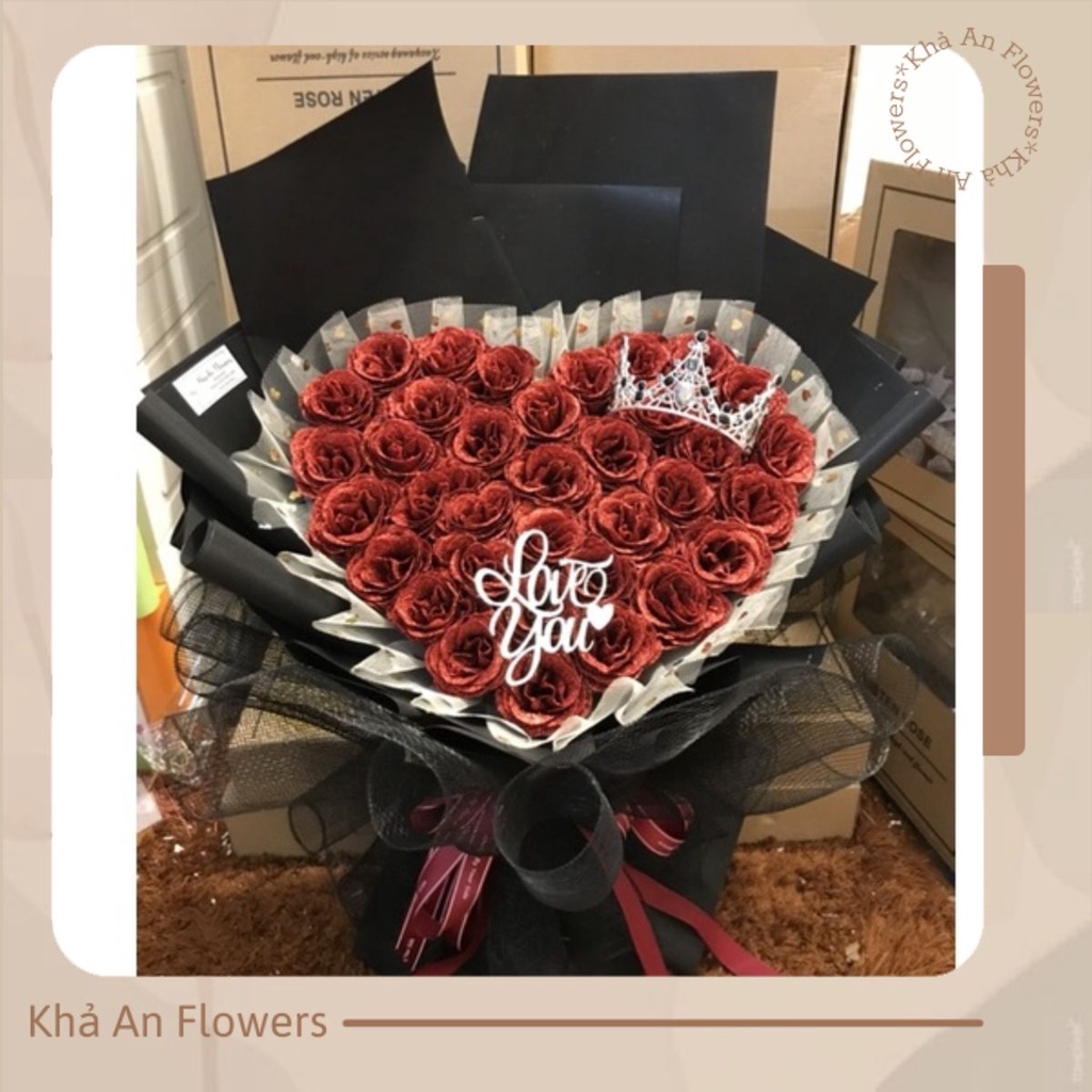Giới thiệu Bó hoa tim Nhũ vĩnh cửu 35 bông cực to đẹp. Vương miện +30k. Ảnh thật nhà Khả An