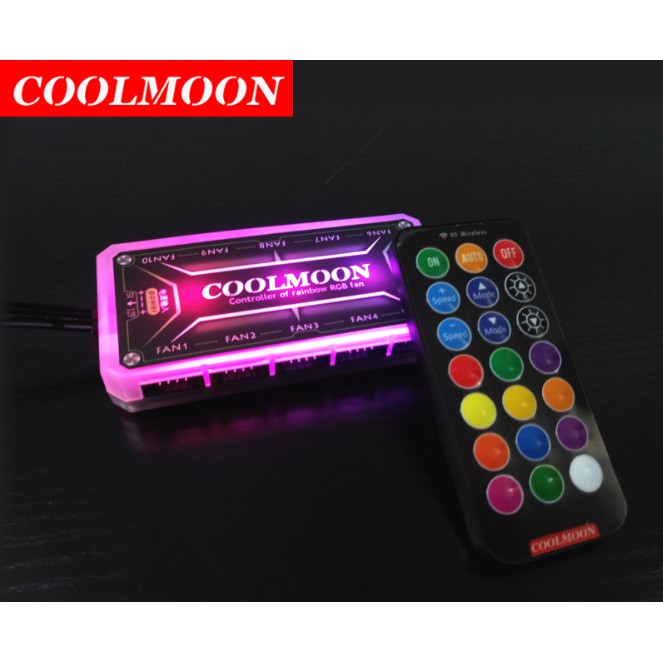 - Remote điều khiển từ xa và Hub tương thích dùng chung cho cả Fan Coolman và Coolmoon, dùng sóng RF cho khả năng phát và nhận tín hiệu với khoảng cách xa và xuyên vật cản tốt.