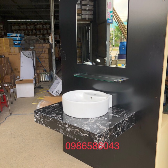 => chú ý : - Bộ bàn đá chưa bao gồm gương soi , kệ kính , vòi lavabo .