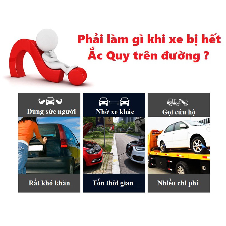 - Sở hữu sản phẩm này, bạn có thể kích nổ máy ô tô và còn có thể sử dụng cho những mục đích khác nữa như cung cấp nguồn điện 220V cho các thiết bị gia dụng phòng trường hợp bị mất điện. Mùa hè mà mất điện thì những thiết bị này sẽ là vô giá