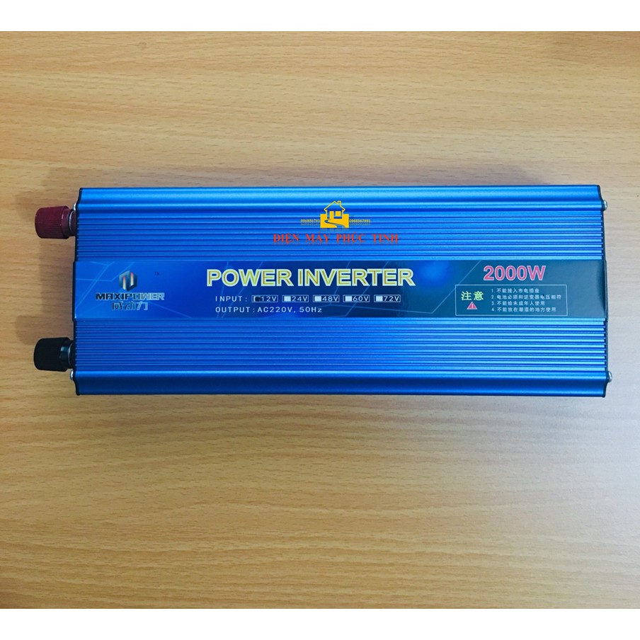 - Bộ Kích Điện Inverter 2000W chuyển đổi từ dòng điện một chiều điện áp thấp 12V sang dòng điện xoay chiều điện áp cao 220VAC tần số 50Hz lấy nguồn từ bình acquy 12VDC