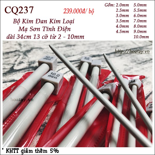 Giới thiệu BỘ KIM ĐAN KIM LOẠI MẠ SƠN TĨNH ĐIỆN 13 SIZE DÀI 33CM CQ237- Bộ kim đan bằng kim loại đan áo, đan khăn len.