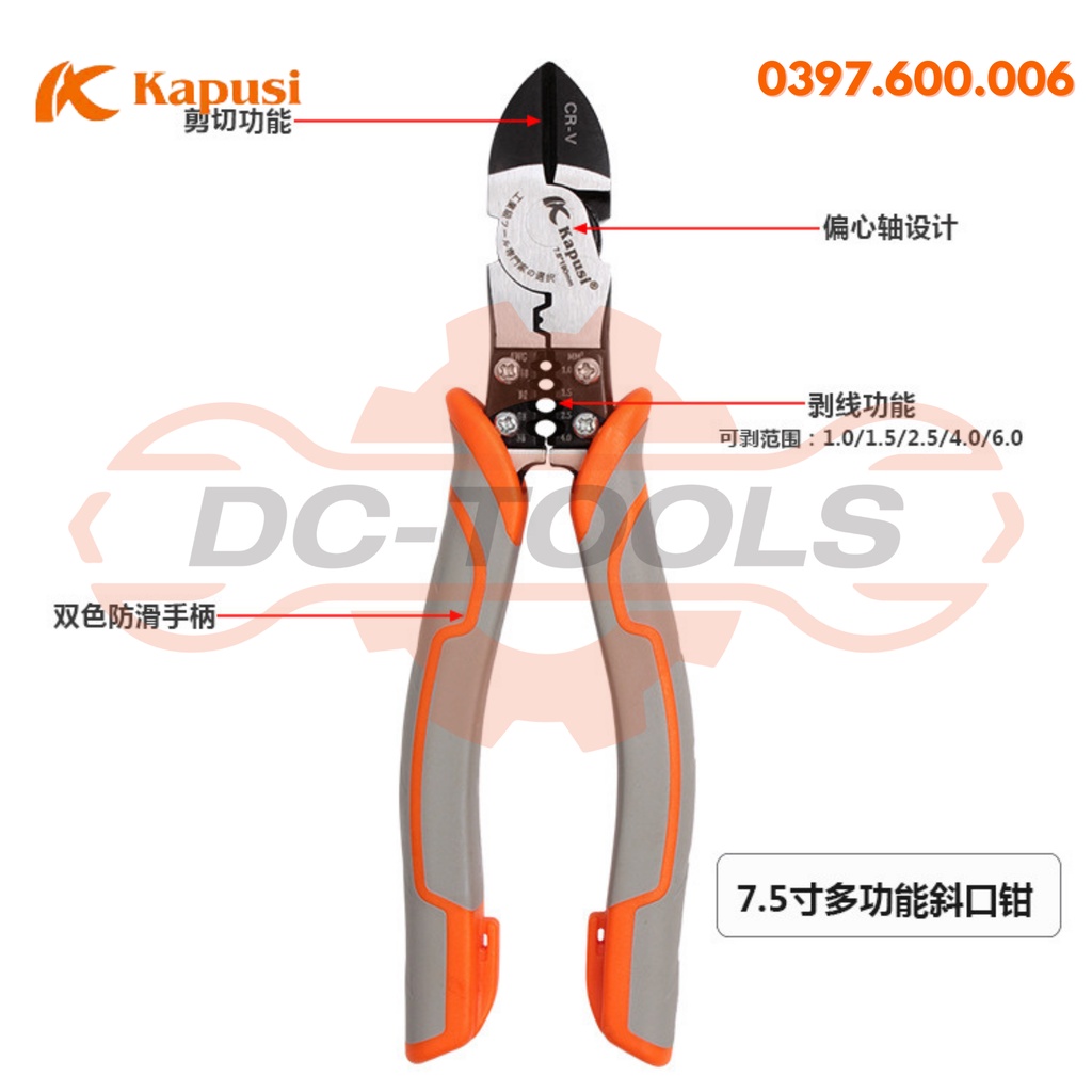 Giới thiệu BỘ KÌM KAPUSI KÌM CẮT, KÌM ĐIỆN, KÌM NHỌN 8,5 ICNH 210mm ĐA NĂNG chính hãng KAPUSI JAPAN, thép CR-V cao cấp DC-TOOL
