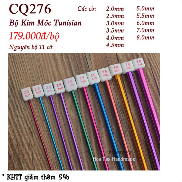 Bộ kim móc Tunisian dài 25cm. Một bộ có 11 size từ 2.0 -8.0mm.2.0/2.5/3.0/3.5/4.0/4.5/5.0/5.5/6.0/7.0/8.0