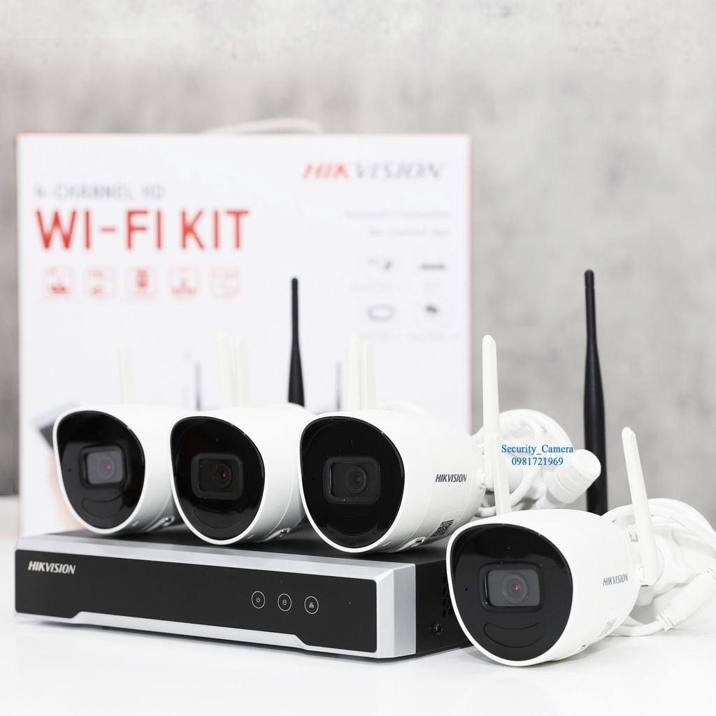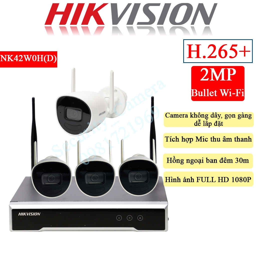 BỘ KIT 4 CAMERA 2M IP WIFI Hikvision NK42W0H (D) / H265+ / Bullet ( KHÔNG DÂY/ CÓ DÂY) 2MP BH 24TH