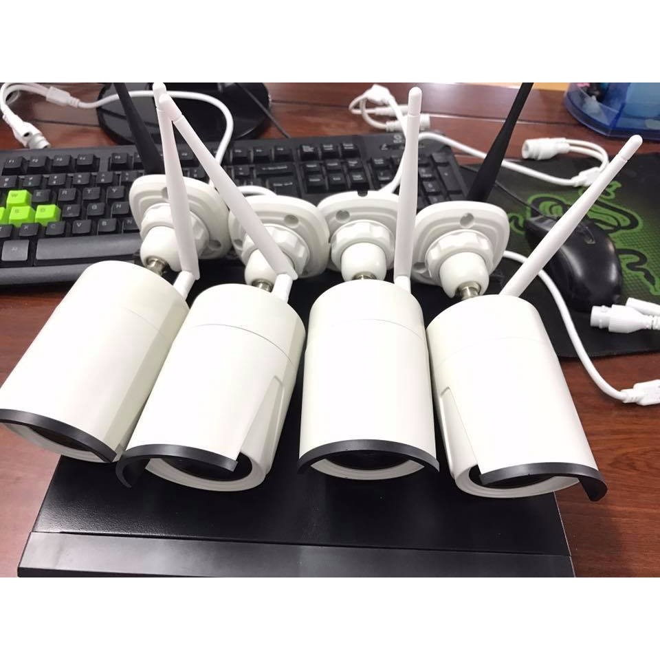 Trọn Bộ Kit Camera Không Dây NVR KIT Full HD bao gồm 04 camera IP Wifi thân trụ 2.0 MP cho hình ảnh full HD., 01 đầu ghi IP 4 kênh, các phụ kiện đi kèm (nguồn đầu ghi, nguồn camera, dây mạng, ăng-ten).