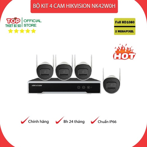 BỘ KIT WIFI HIKVISION 4 CAMERA NK42W0H full HD1080p kèm HDD - Chính hãng bảo hành 24 tháng
