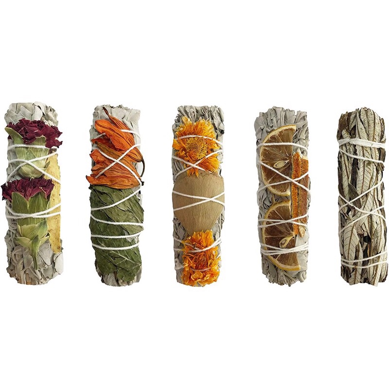 Bó Lá Xô Thơm Trắng, Xanh, Tuyết Tùng, Gỗ Trắc Xanh Nam California - White / Blue / Cedar Sage/Palo Santo
