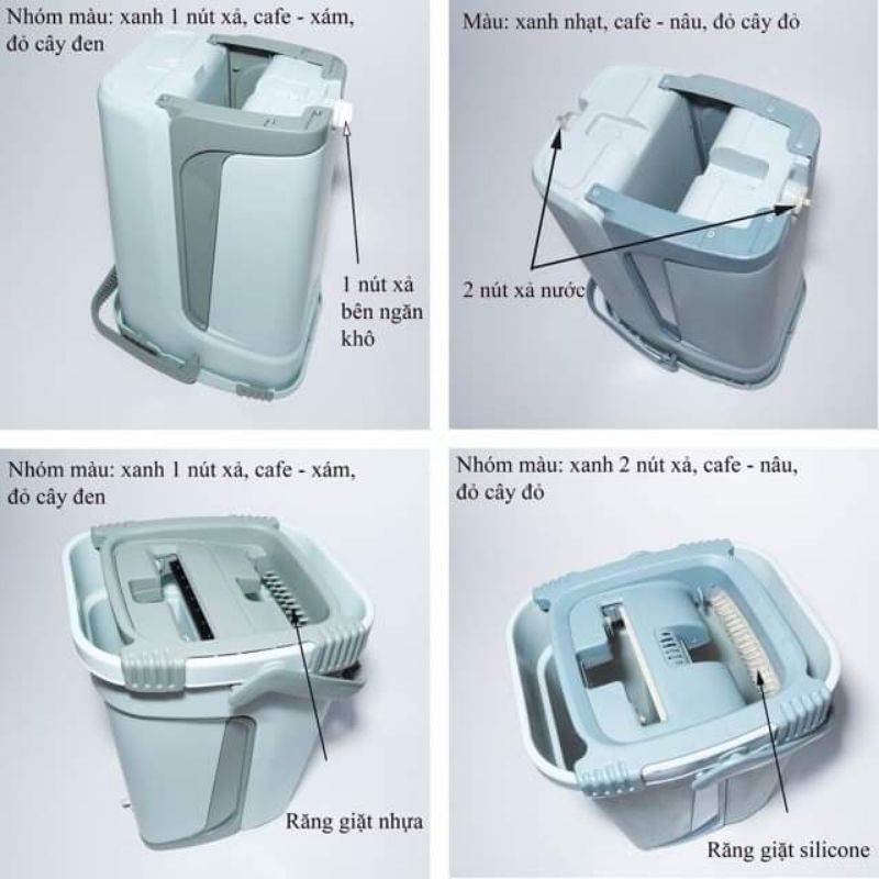 - Bộ lau nhà 2 ngăn 360° giặt và vắt cực sạch, bông khít lau rất sạch..