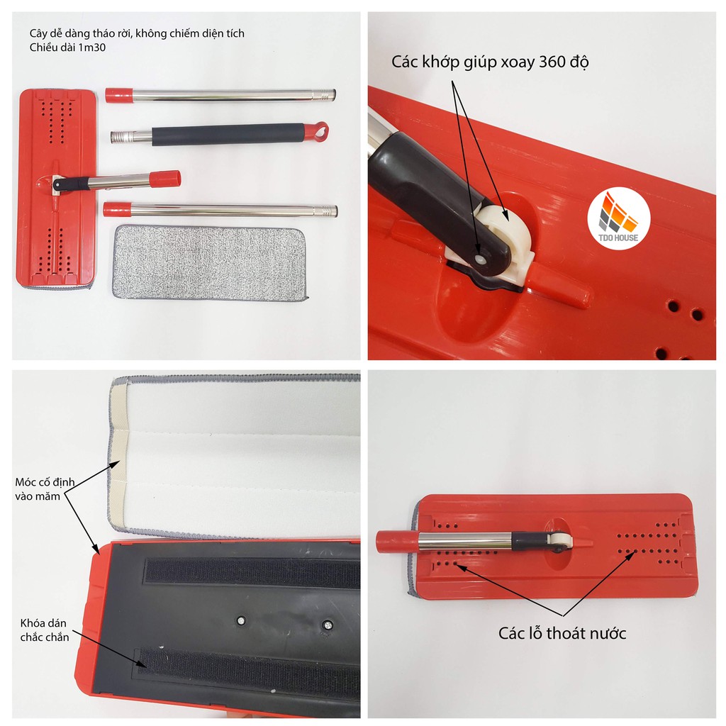 ✓ Bông lau dệt từ sợi bông tự nhiên mềm mại giúp lau sạch nhà hơn, trên bông lau có 3 cái lỗ mắc vào 3 cái ngàm trên mâm lau nhựa, các bạn nhớ mắc vào cho đúng nhé, không là sẽ bị tuột bông đó ạ