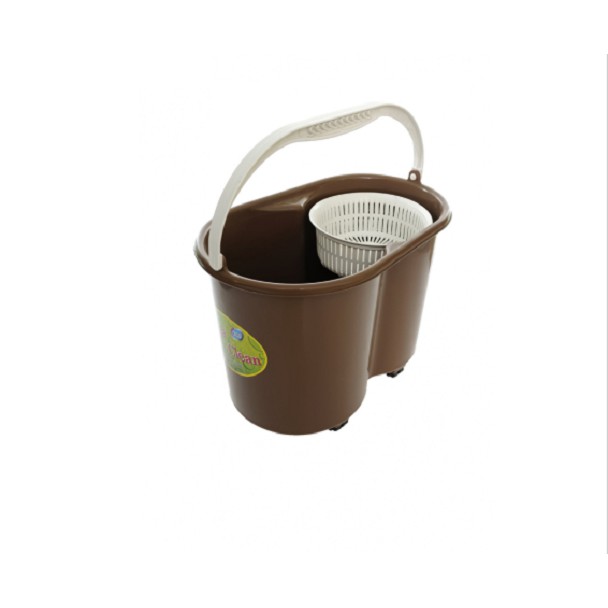 BỘ LAU NHÀ 360 MEGA CLEAN XÔ LỚN, RỔ DÍNH, BÁNH XE, MÀU NÂU LN207
