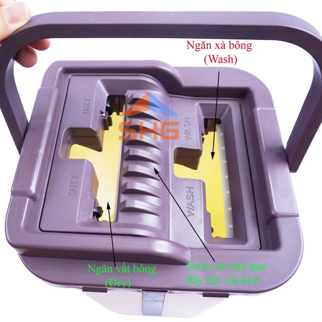 ✓ Thùng lau nhà, quai xách được làm từ nhựa dẻo - khỏi sợ nóng giòn rồi bị nứt nhé