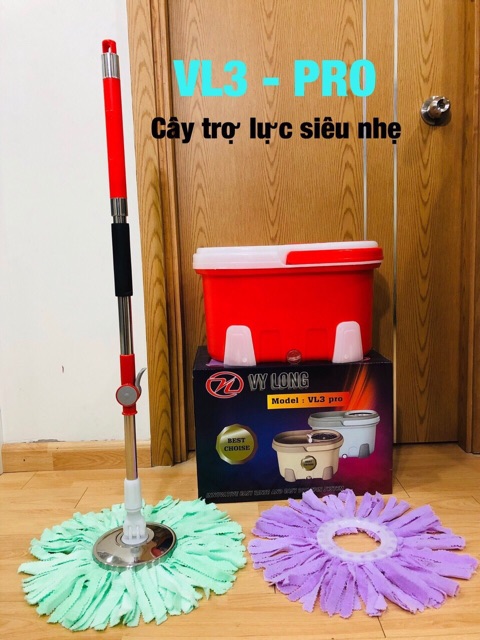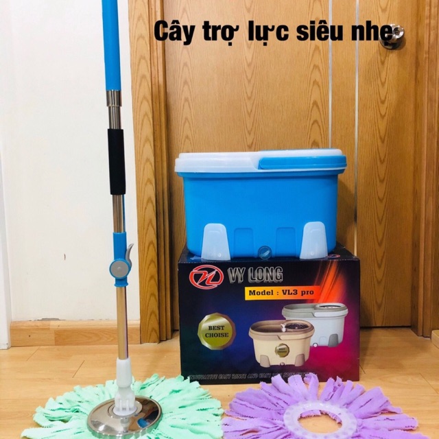 BỘ LAU NHÀ CAO CẤP NHIỀU MÀU, PHIÊN BẢN CÂY TRỢ LỰC, HAI BÔNG LAU
