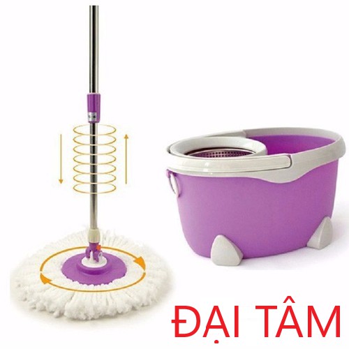 - Bộ lau nhà gồm: 1 thùng vắt, 1 bàn xoay 360 độ, bộ cán lau, 2 đầu bông lau.
