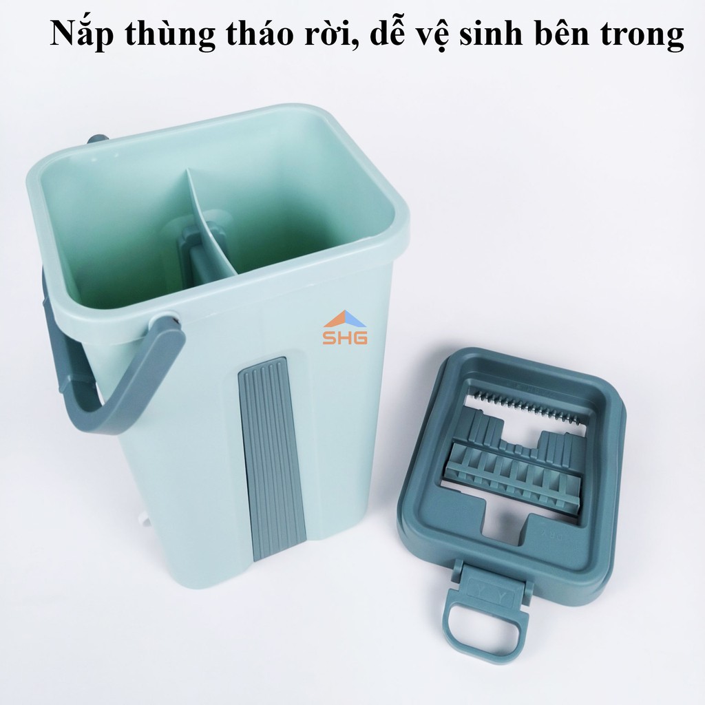 BỘ LAU NHÀ MĂM CHỮ NHẬT SỌC DỌC CAO CẤP, HAI NGĂN GIẶT VÀ VẮT ĐỘC LẬP, CỰC KHÔ CỰC SẠCH