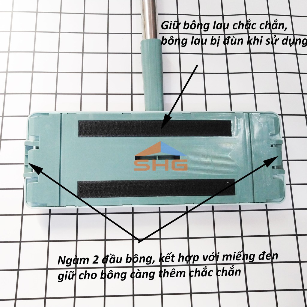❅ Chất liệu bông lau: Sợi microfiber dệt khít giúp lau sạch hơn. Mặt sau có 6 lỗ ngàm bông lau (tức ngàm bông lau được 2 đầu) giúp bông ổn định và chắc chắn hơn