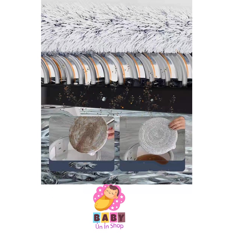 - Chổi được thiết kế Bơm nước độc đáo khi xoay(khi xoay bơm nước hoạt động và bơm lượng nước vừa đủ để giặt bông lau,và tự động vắt khô)