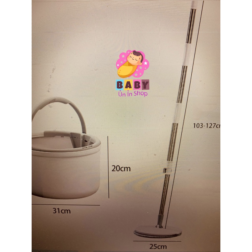 - Cây lau nhà xoay kích thước dài 1m25 kết nối bàn xoay (bàn xoay này xoay được các góc độ khác hoàn toàn với cây lau bình thường)