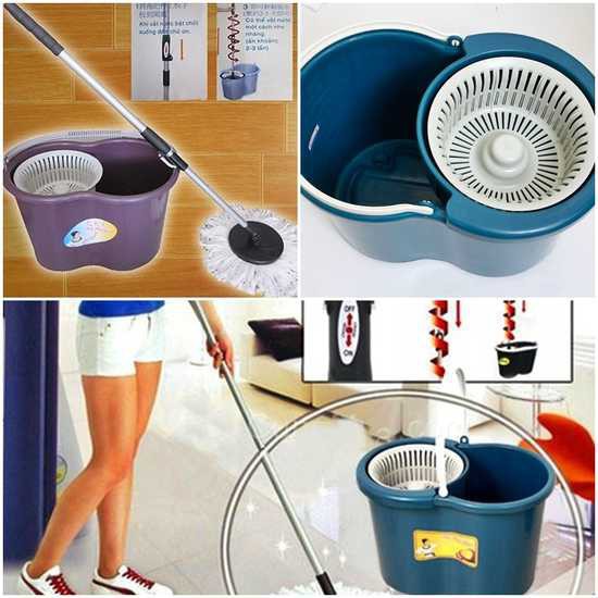 - Khi muốn làm sạch đầu lau, cho cây lau nhà vào trong thùng đựng nước có chứa chất tẩy rửa (nếu cần) và nhúng vài cái là sạch ngay.