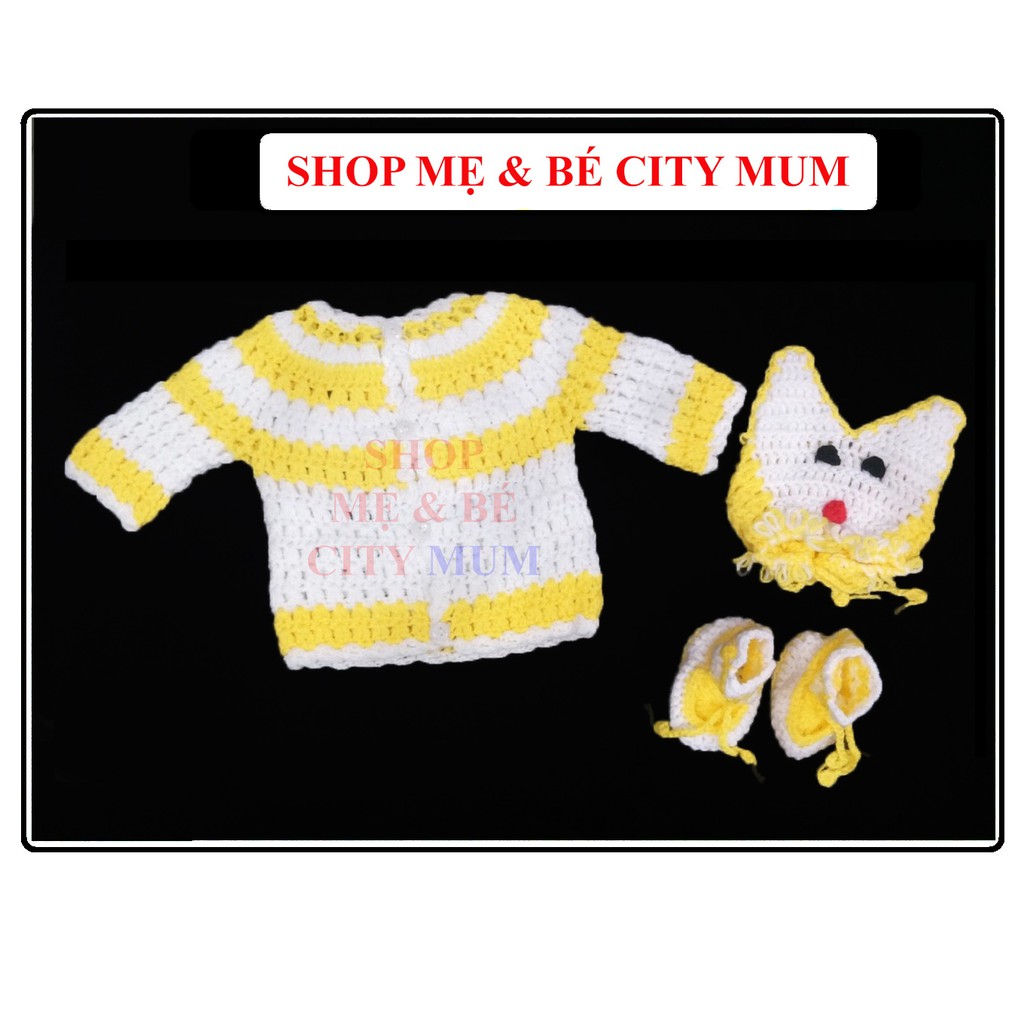 Bộ áo, nón và vớ tay bằng len cho trẻ sơ sinh đến 5 tháng (2-7kg )_Loại len đan móc dày dặn,có độ co giãn tuyệt đối