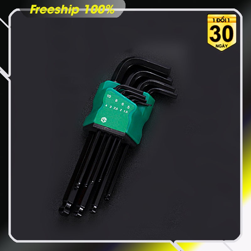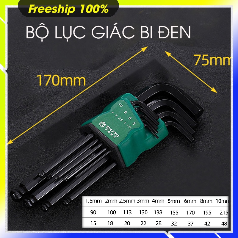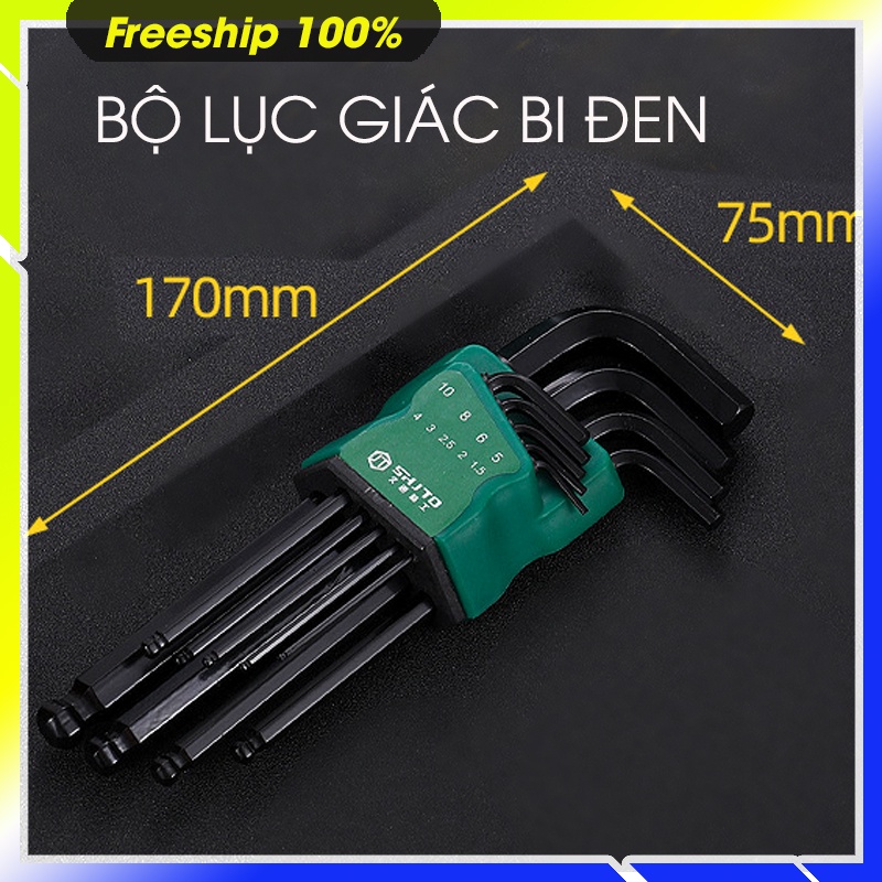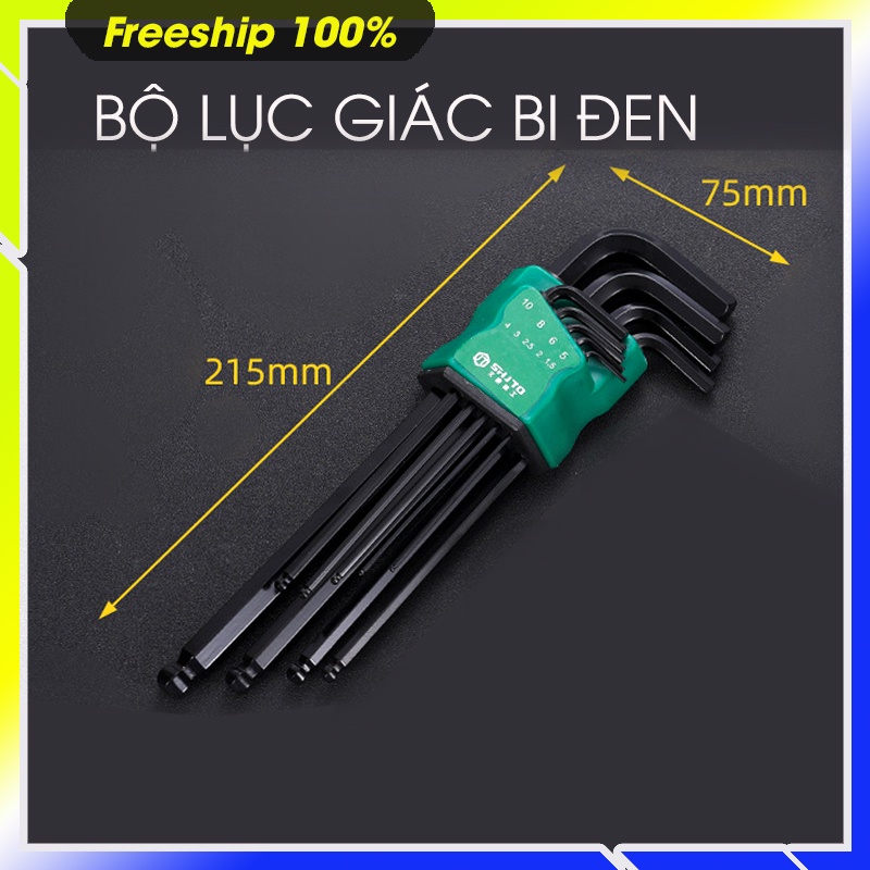 BỘ LỤC GIÁC 9 CÂY, 1 ĐẦU LỤC GIÁC , 1 ĐẦU BI, MẠ CROM ĐEN CÓ 2 SIZE, dài 22cm và 17 cm