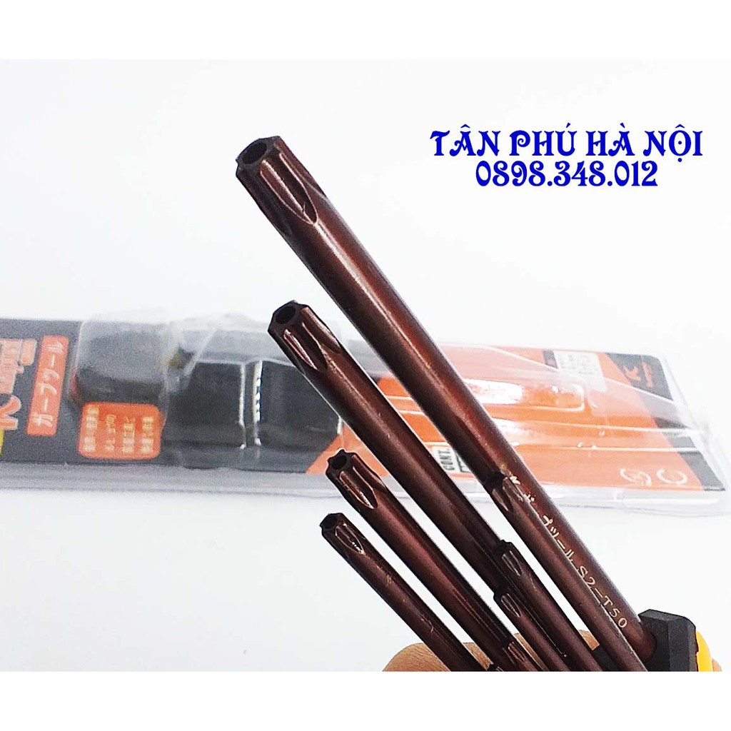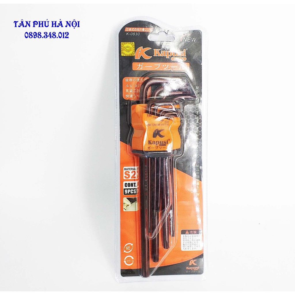 BỘ LỤC GIÁC HOA THỊ KAPUSI 9 CHI TIẾT9 đầu tiện lợi : T10-T15-T20-T25-T27-T30-T40-T45-T50 DÀI 220MM