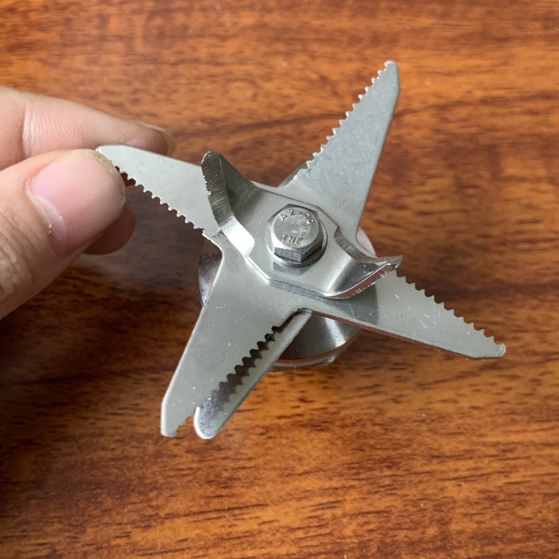 Lưỡi dao Inox sắc bén với 4 cánh dạng chữ U có thể xé tan mọi thực phẩm. Vòng bi chạy êm ái, không rung lắc.