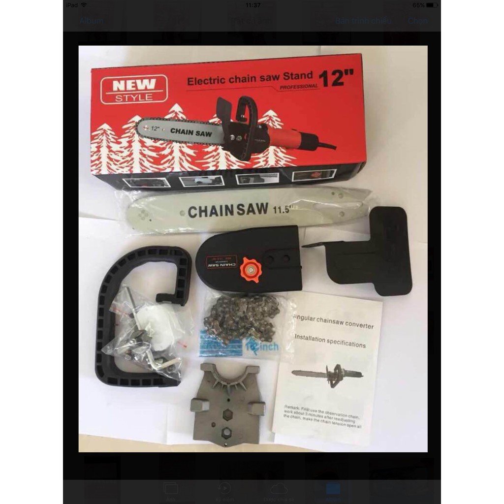 - Bộ dụng cụ cưa xích này gồm 1 lưỡi cưa xích và một số phụ kiện để biến chiếc máy mài góc thành máy cưa xích. Ưu điểm của bộ sản phẩm này là dễ sử dụng,có thể giúp bạn dễ dàng lắp đặt. Được người tiêu dùng tin tưởng, bộ dụng cụ này tuy có mức giá rẻ đạt chất lượng, độ bền cao, phần lưỡi cưa được làm từ hợp kim thép tốt có thể chống mài mòn, rỉ sét... có độ sắc bén cao giúp việc cưa các thanh gỗ cứng hiệu quả, nhanh.