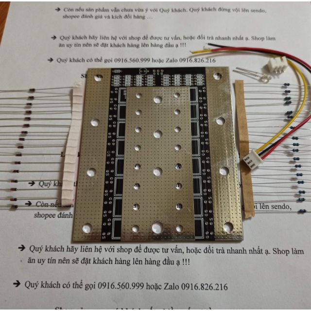 Gồm bo mạch và phụ kiện như hình (điện trở, diode, led, dây nối, jumper)Shop có bán FET 3713: