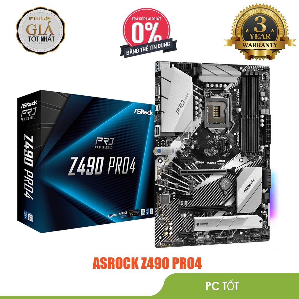 Máy tính & Laptop > Linh Kiện Máy Tính > Mainboard - Bo Mạch Chủ || [Mã ELHASALE1TR giảm 5% đơn 3TR] Bo mạch chủ ASROCK Z490 Pro4 - Bảo hành chính hãng 36 thángCòn hàng