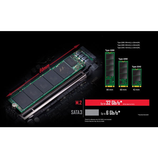 Thiết bị tích hợp khe M.2 cung cấp hiệu suất lưu trữ nhanh hơn đáng kể và hỗ trợ cho cả giao diện PCIe và SATA* cho các thiết bị SSD M.2.