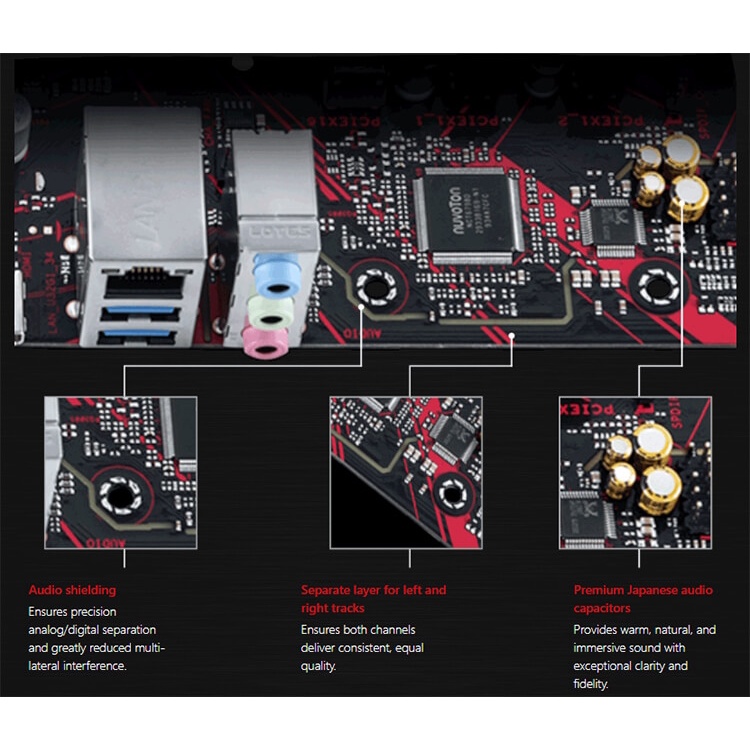 Thiết kế với 5X Protection III hàng đầu trong ngành, sử dụng các thành phần tốt nhất, thiết kế mạch tuyệt vời và các tiêu chuẩn chính xác để đảm bảo chất lượng và độ bền lâu dài cho bo mạch chủ của bạn.