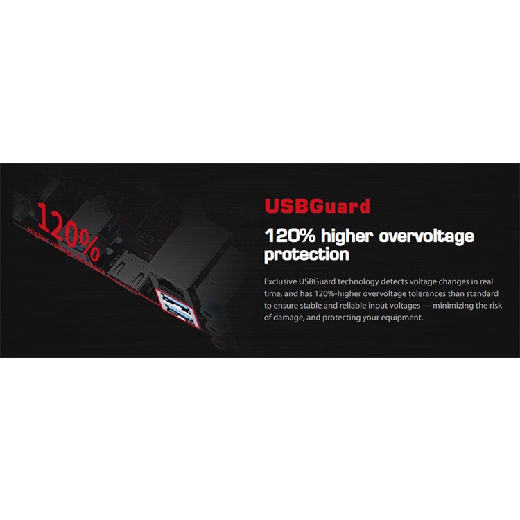 Công nghệ USBGuard độc quyền phát hiện sự thay đổi điện áp trong thời gian thực và có dung sai quá điện áp cao hơn 120% so với tiêu chuẩn để đảm bảo điện áp đầu vào ổn định và đáng tin cậy.