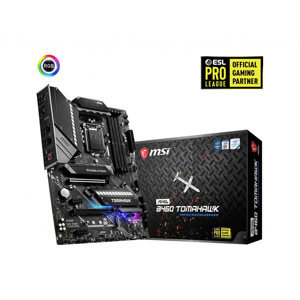 Bo mạch chủ Main MSI MAG B460 TOMAHAWK Intel B460, Socket 1200, ATX, 4 khe RAM DDR4Mainboard MSI MAG B460 TOMAHAWK là bo mạch chủ sử dụng chipset B460 của Intel, hỗ trợ vi xử lý Intel® Core™ / Pentium® Celeron® thế hệ 10 socket LGA 1200. Là một bo mạch chủ với giá cả phải chăng, Mainboard MSI MAG B460 Tomahawk vẫn sở hữu đầy đủ tính năng để đáp ứng cho nhu cầu làm việc cũng như gaming. MAG series ra đời thông qua các cuộc thử nghiệm chất lượng một cách kỹ lưỡng và được thiết kế để trở thành biểu tượng của sự chắc chắn và bền bỉ.