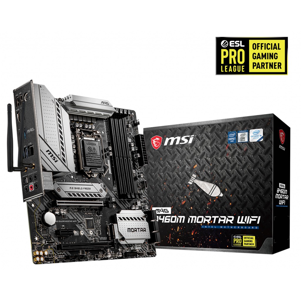 Bo mạch chủ Main MSI MAG B460M MORTAR WIFI Intel B460, Socket 1200, m-ATX, 4 khe RAM DDR4Mainboard MSI MAG B460M MORTAR WIFI là bo mạch chủ sử dụng chipset B460 của Intel, hỗ trợ vi xử lý Intel® Core™ / Pentium® Celeron® thế hệ 10 socket LGA 1200. Là một bo mạch chủ với giá cả phải chăng, Mainboard MSI MAG B460M MORTAR WIFI vẫn sở hữu đầy đủ tính năng để đáp ứng cho nhu cầu làm việc cũng như gaming. MAG series ra đời thông qua các cuộc thử nghiệm chất lượng một cách kỹ lưỡng và được thiết kế để trở thành biểu tượng của sự chắc chắn và bền bỉ.