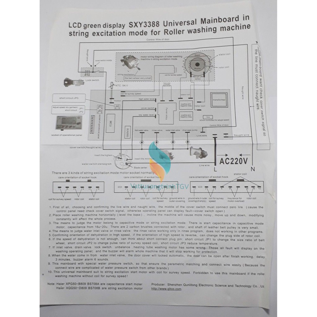 Bo mạch đa năng SXY-3388 cho máy giặt cửa ngangĐiên áp 220v-240V/50Hz
