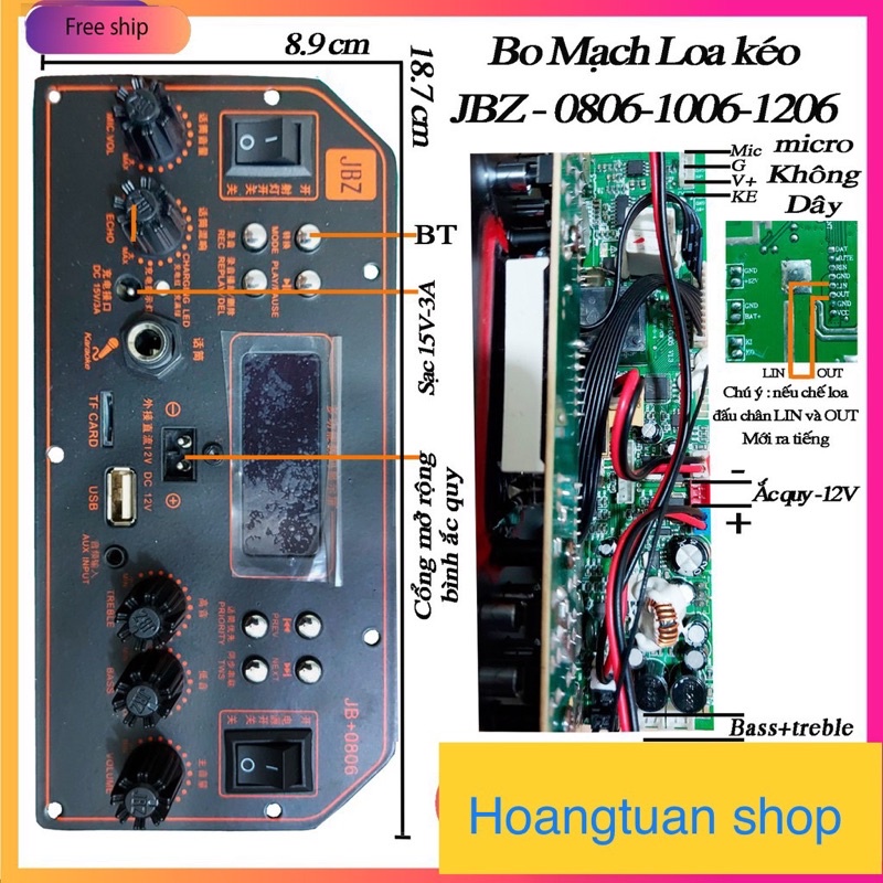 Bo mạch loa kéo JBZ 1206( ko bao gồm mạch micro).chưa có bo micro và tay mic dây cắm giắcBo mới nhập chính hãng jbz lắp thay thế mạch hư