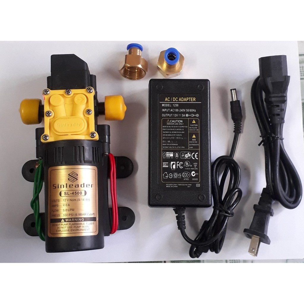 BỘ MÁY BƠM TĂNG ÁP 12V - 5A kèm nguồn adapter tặng kèm 2 Ren Ra Ống 8MM