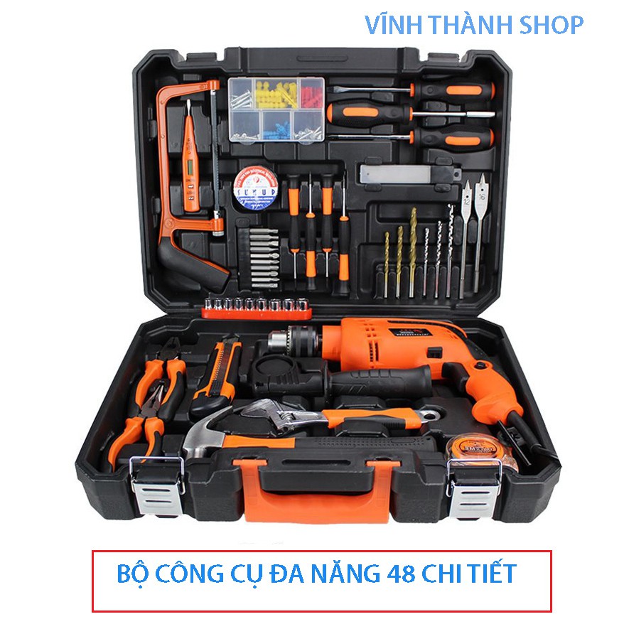 BỘ CÔNG CỤ - BỘ DỤNG CỤ ĐA NĂNG BỘ MÁY KHOAN SỬA CHỮA 48 CHI TIẾT TIỆN DỤNGVới dân công trình việc sở hữu một bộ công cụ đa năng với đầy đủ các chi tiết cần có là một điều tất yếu, còn với những hộ gia đình hay những người hay lái xe đường xa hãy sắm ngay một công cụ này nhé bởi: Với bộ công cụ 48 chi tiết này có thể dùng để sửa chữa 90% các thiết bị trong nhà, cũng nên thủ sẵn trong cóp xe nhé, đến lúc cần sẽ rất quan trọng đó ạ. Thiết kế nhỏ gọn được sắp xếp chỉnh chu trong hộp đựng chuyên dụng. Tất cả công việc sửa chữa sẽ trở nên rất dễ dàng khi sở hữu bộ công cụ đa năng này.
