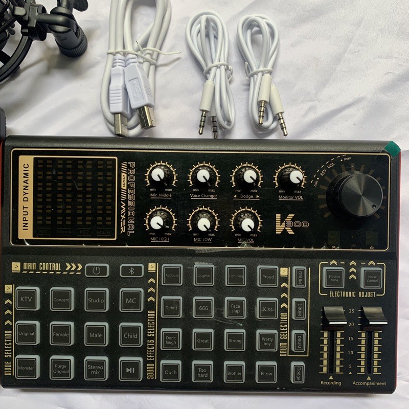 Các nút bấm và núm chỉnh của soundcard SK300 hoạt động hiệu quả và bền. Có các chức năng chỉnh tần số giọng, bass trable, âm lượng giọng, âm lượng nhạc nền… Ngoài ra còn có các núm chỉnh tiếng vang (giọng vang nhiều hay vang ít – echo) và các nút bấm chỉnh hiệu ứng giọng. Sound card SK300 có thể đổi giọng người dùng thành giọng trẻ con, giọng phụ nữ, ông già. Thích hợp cho việc live stream trên các nền tảng như facebook, tiktok, bigo…