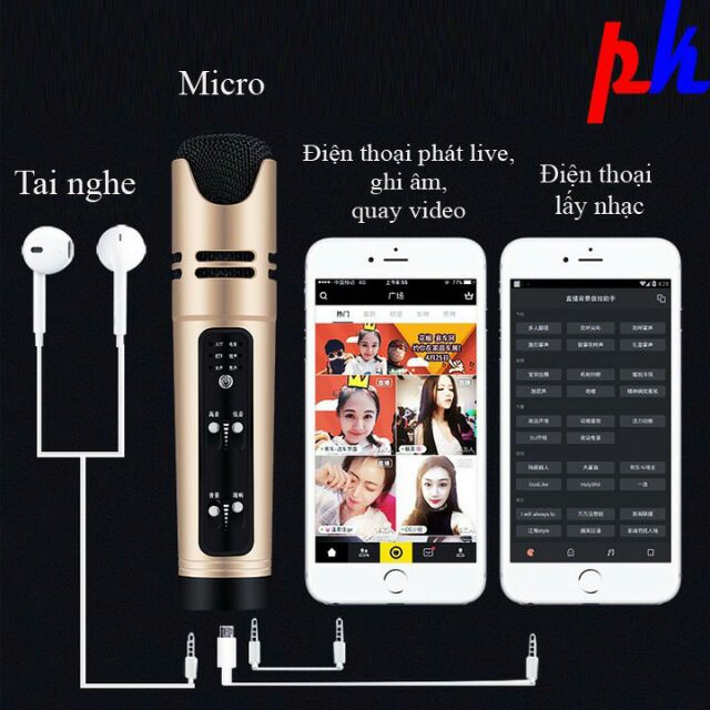 BỘ MIC LIVE STREAM KARAOKE ĐA NĂNG C16 GIẢ GIỌNG ĐỦ DÂY KẾT NỐI TẶNG TAI PHONE
