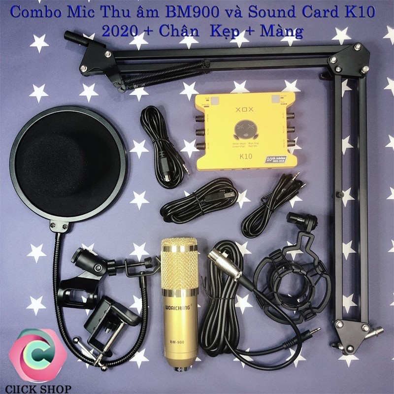 Bộ mic thu âm BM900 Sound Card XOX K10 2020 phiên bản tiếng anh chân màng- combo live stream đầy đủ đã có dây live strea.1. GIỚI THIỆU BỘ THU ÂM BM900 VÀ SOUND CAR XOX K10 2020